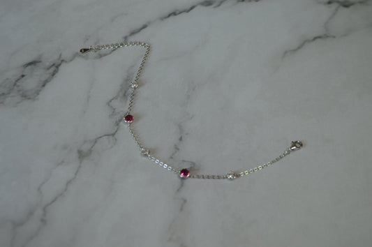 Sterling Silver 925 Bracelet with Red & White Zircon Gems – Chic and Stylish Accessory