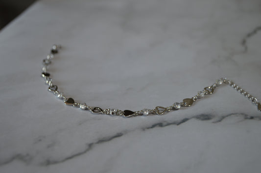 Silver 925 Heart Charm Bracelet with Sparkling Stones