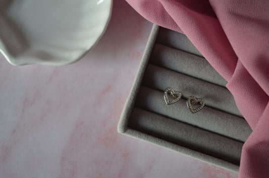 GS0576 925 Sterling Silver Sparkling Heart Stud Earrings for Women