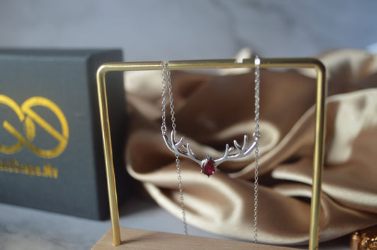 GS0056 Rhodium plated original Silver necklace with Ruby Stone