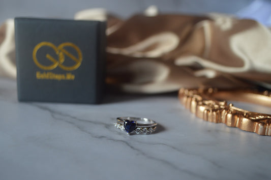 GS0009 Sterling Silver 925 Ring Rhodium Plated with heart shaped Tanzanite