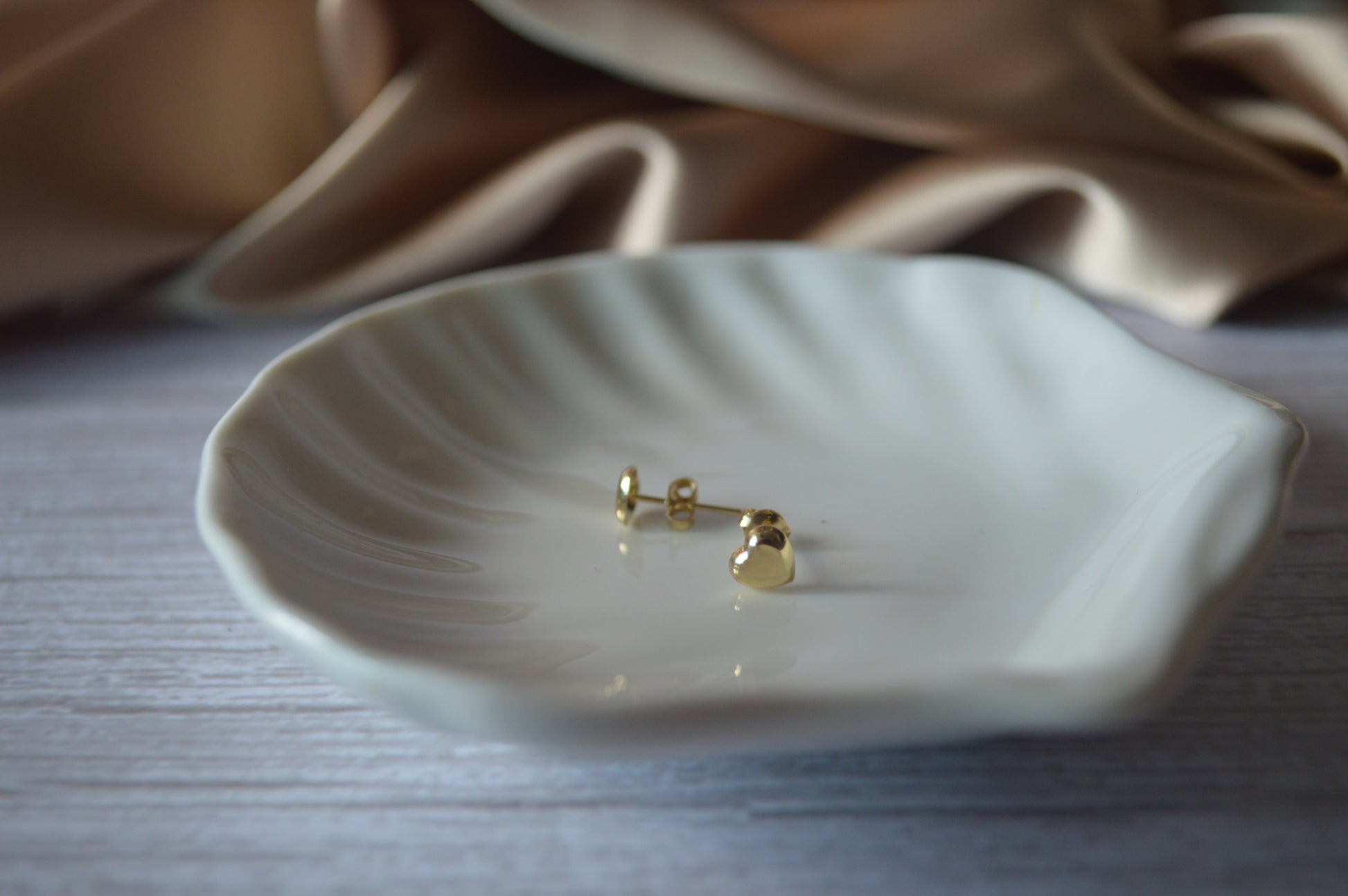 Charming 18K original gold heart earrings, measuring 4 mm. Available in Maldives with free delivery within Malé and Hulhumalé. Perfect for adding a touch of romance and elegance to any outfit.