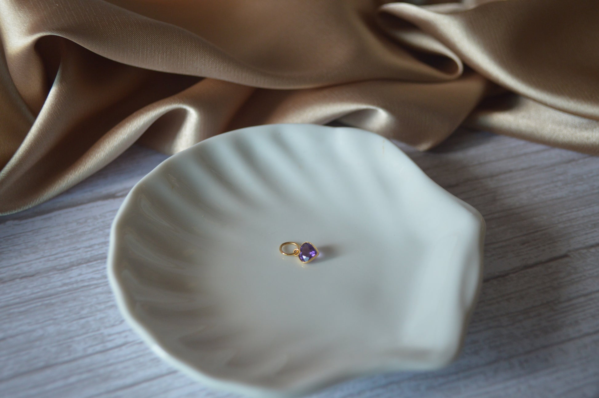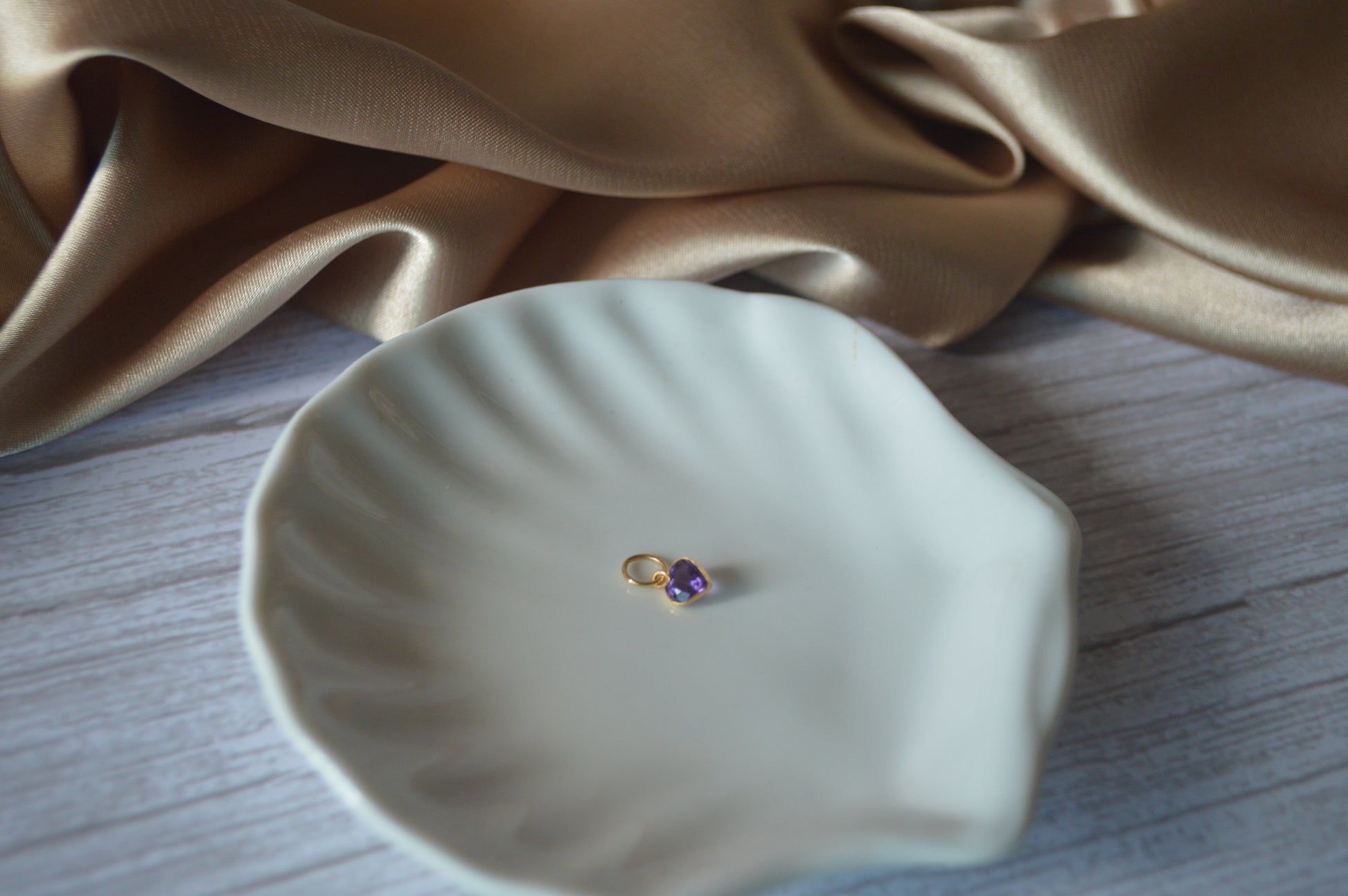 18K Gold Pendant with Heart Purple Natural amethyst