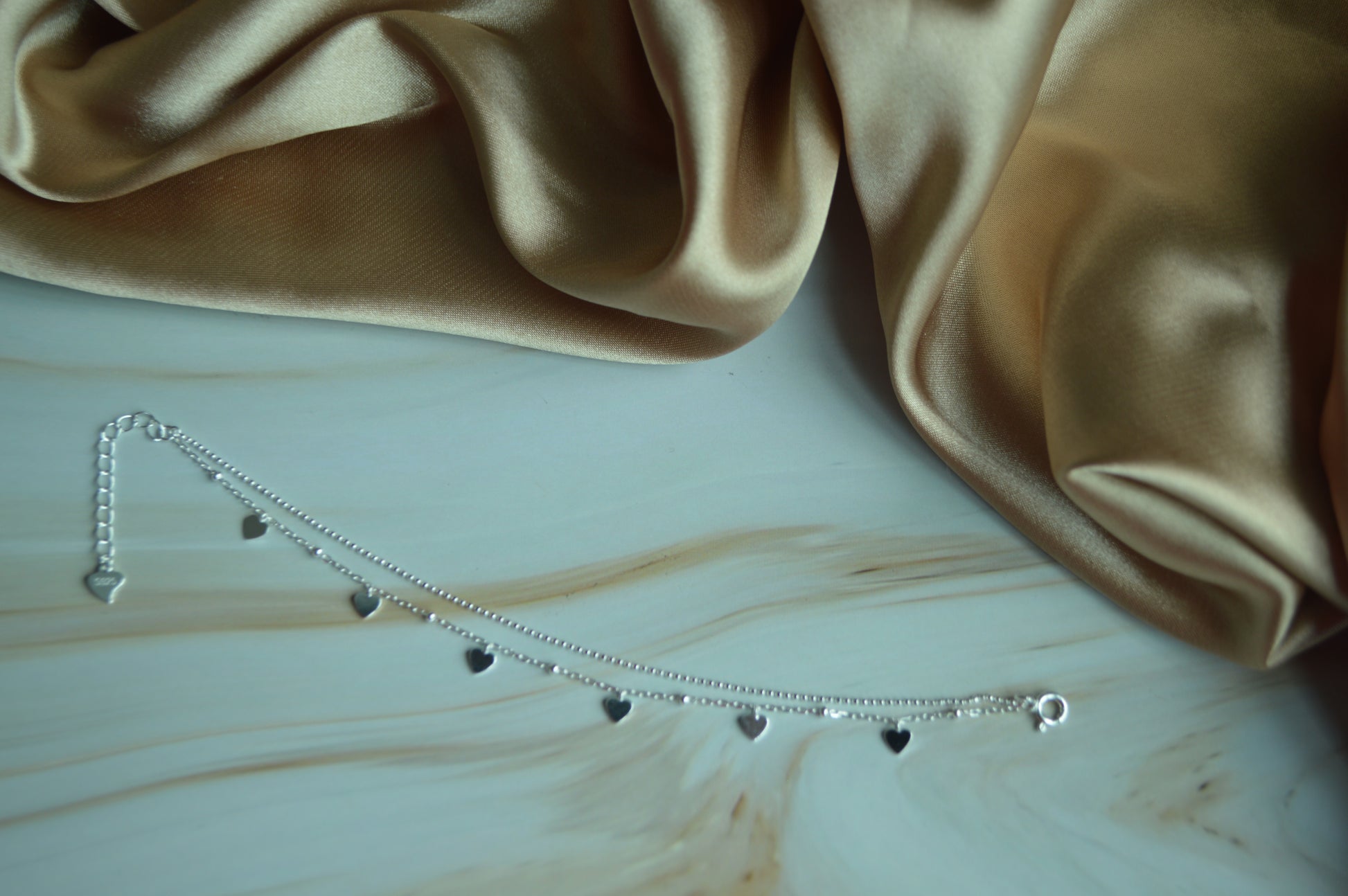 Crafted from genuine 925 sterling silver, this delicate bracelet features a graceful row of finely polished heart-shaped charms, evenly spaced along a sleek silver chain. The smooth, reflective finish captures the light beautifully, while the secure lobster clasp ensures both comfort and durability. Its cool silver tone pairs effortlessly with any outfit, making it perfect for everyday wear, romantic occasions, or as a thoughtful gift for someone special. A versatile piece that blends minimalist sophistication with a touch of playful charm—designed to be treasured for years.