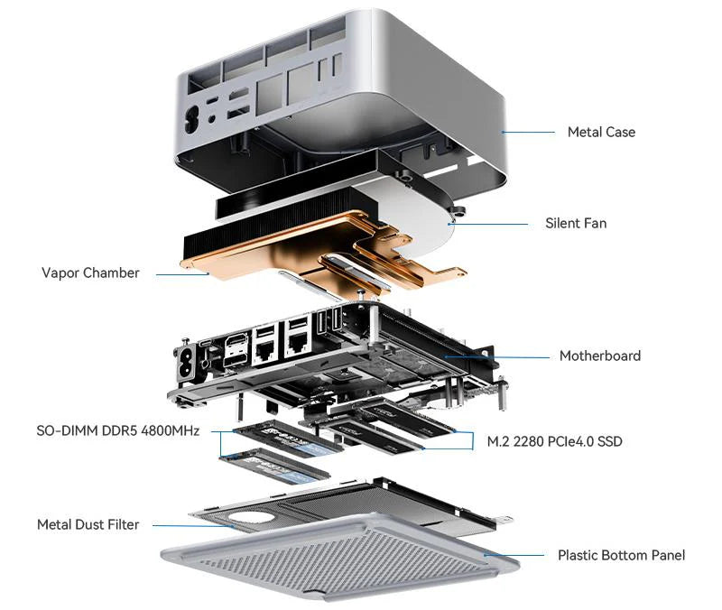 Beelink’s i9 mini PC packs a dual-speaker setup right into its chassis, with each downward-firing driver powered by a dedicated DSP chip and professional amplifier to deliver surprisingly full-bodied, distortion-free audio—crisp highs, natural mids and respectable bass—so you can stream movies, hold conference calls or enjoy casual gaming without plugging in external speakers, all while the MSC 2.0 cooling system keeps fan noise down to around 32 dB.