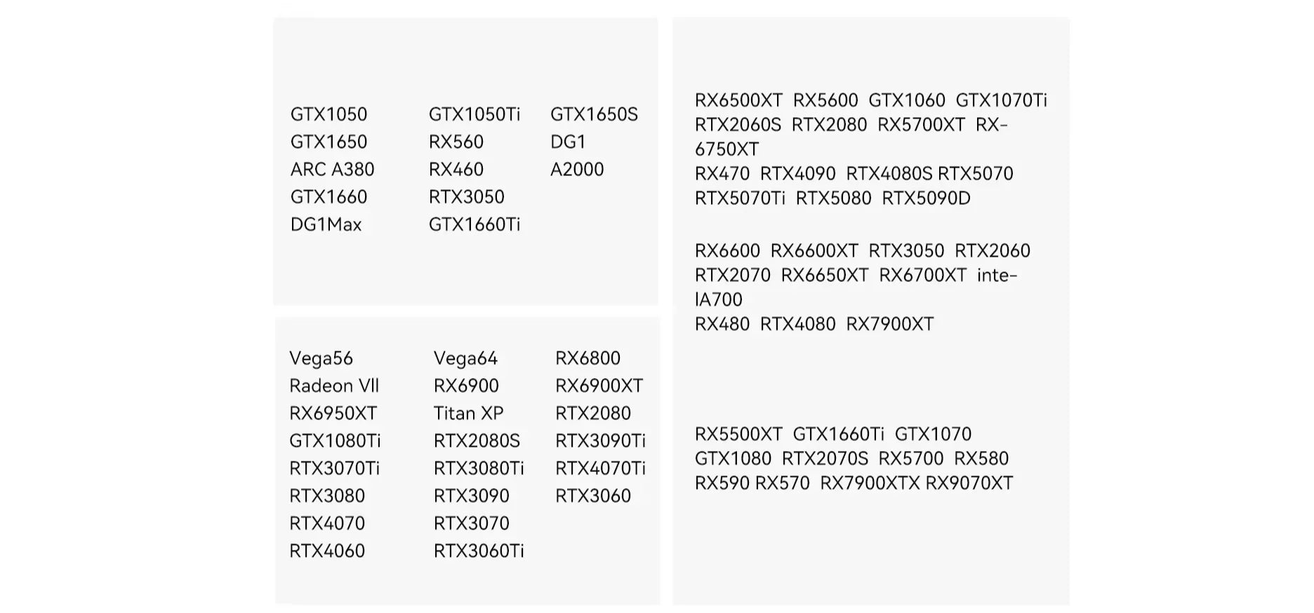 GTi13 Ultra&EX Docking Station Graphics Card Compatibility Chart