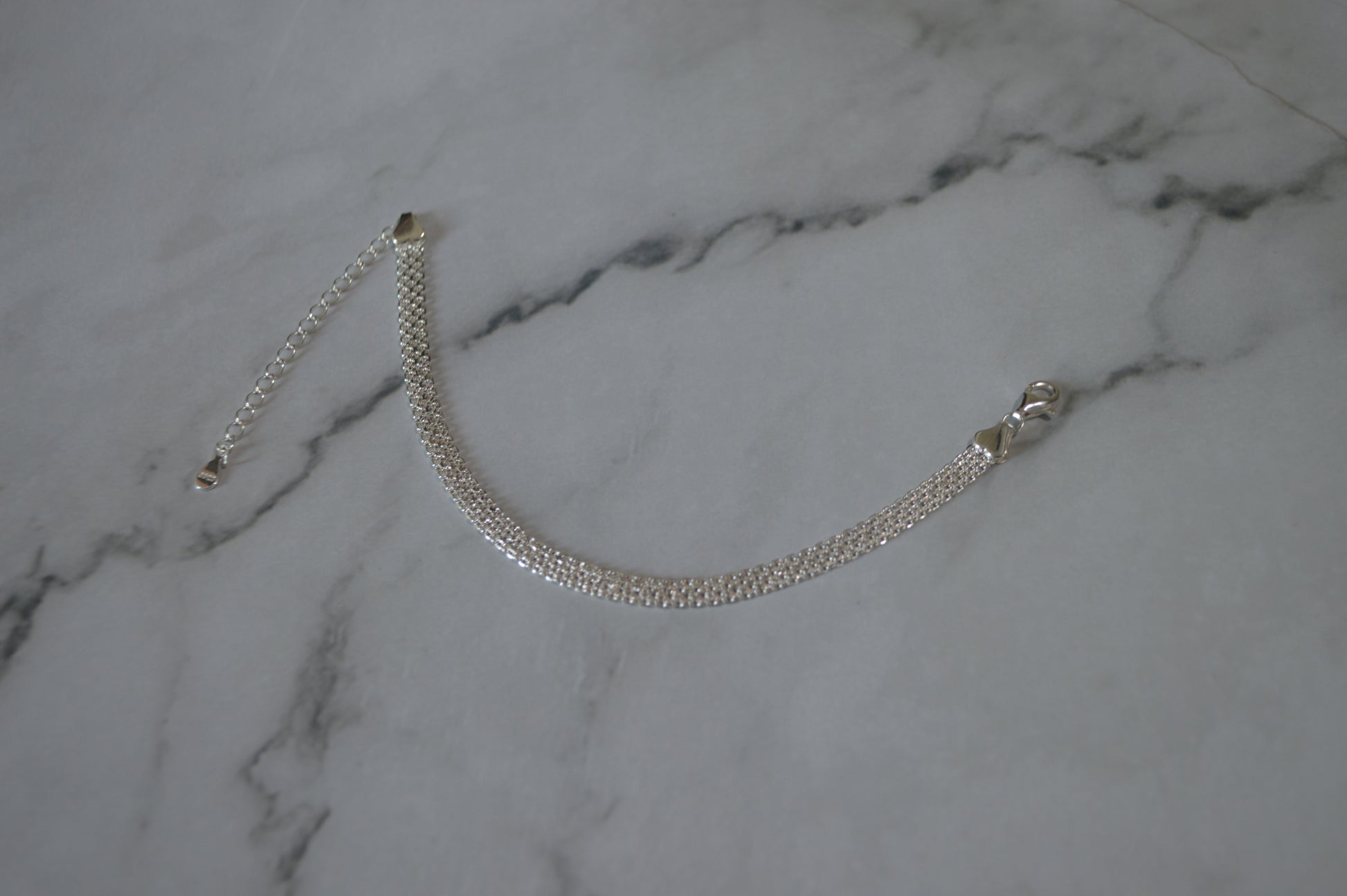 Delicately designed for effortless style, this Sterling Silver 925 bracelet features a slender fine link chain with an adjustable clasp, offering a perfect, customized fit. Its sleek, minimalist design makes it a versatile piece—ideal for daily wear or layering with bangles and cuffs for a chic stacked look. Subtle shimmer, timeless finish—an essential addition to any modern jewelry collection.